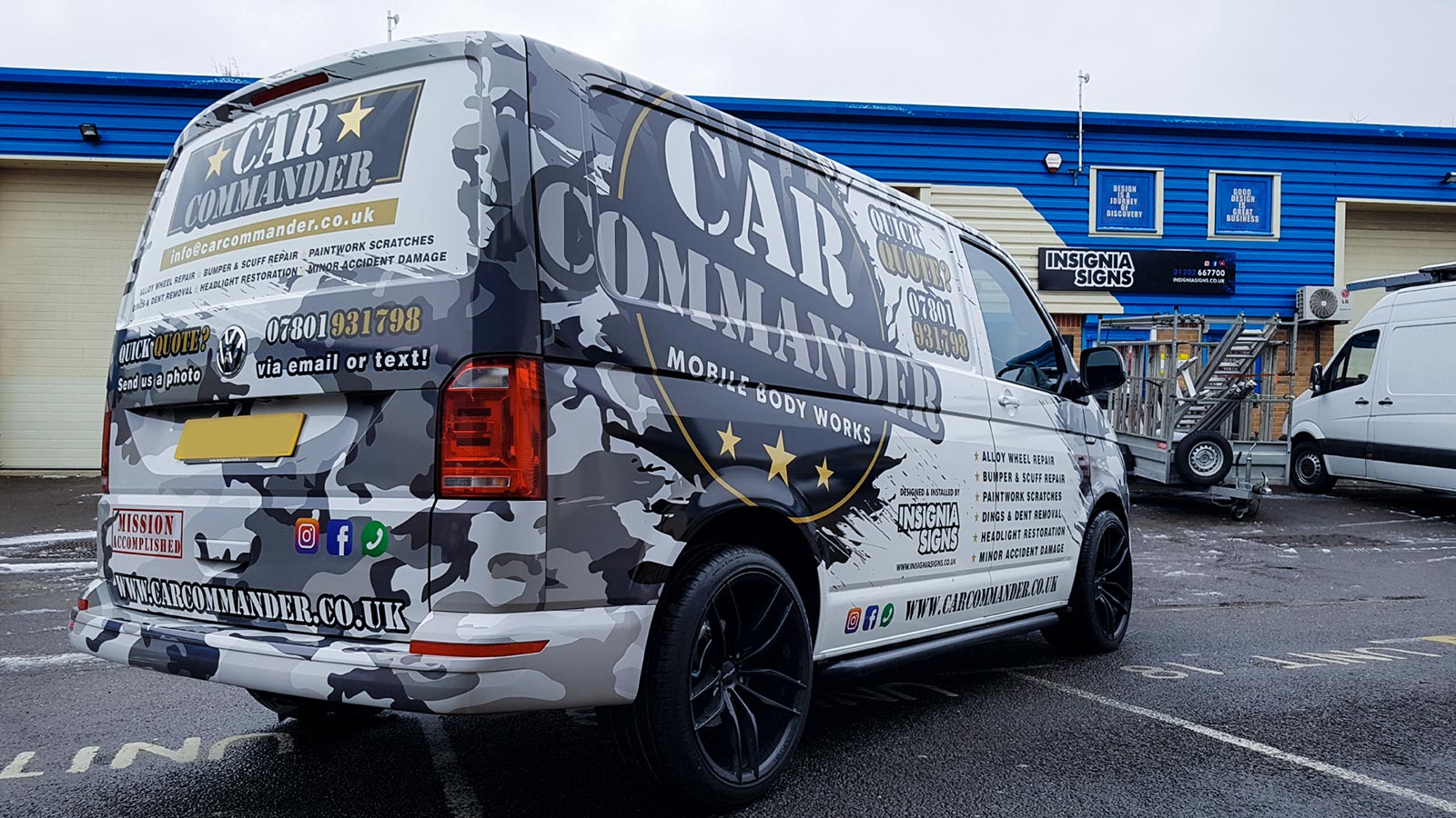 Like car spraying, although a lot more convenient and a lot more personalized! Here at the Insignia Wraps department, we can apply (fully removable) vinyl to your vehicle, giving it a completely fresh new look. If it is a simple colour change you are after to freshen up your pride and joy, or a fully bespoke printed wrap to make your business stand out, giving it the advertising edge it needs, we have your back.